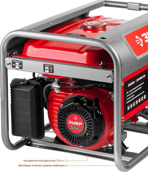 - Профессиональный двигатель ЗУБР является аналогом легендарного бензинового двигателя Honda, ресурс всего генератора 1500 часов