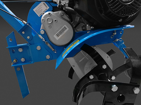 Задняя передача размещена внутри редуктора, что повышает надежность трансмиссии. Таким образом, мотокультиватор «НЕВА» МК100Р-B&S (CR750) прослужит более длительный срок. Кроме того, расположение реверса внутри редуктора упрощает включение техники. Также обеспечивается простота обслуживания изделия.