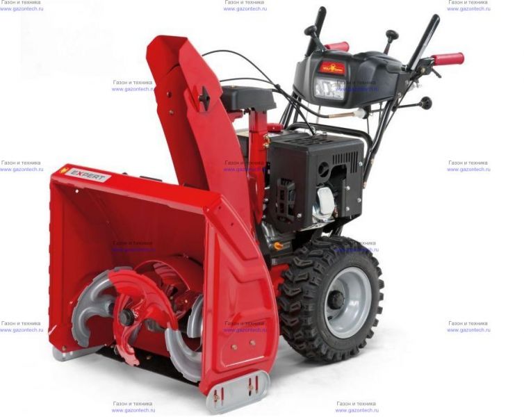 - Трехступенчатая модель. Новый, запатентованный механизм выброса состоит из 3 ступеней: боковые шнеки, центральный шнек и крыльчатка выброса. На первом этапе боковые шнеки измельчают и подают измельченный снег на центральный шнек. На втором этапе центральный шнек проталкивает поданный снег прямо на крыльчатку выброса. На заключительном этапе крыльчатка выбрасывает снег через желоб. 3-х ступенчатая система выброса обеспечивает большую производительность и дальность выброса в сравнении с обычной 2-х ступенчатой.