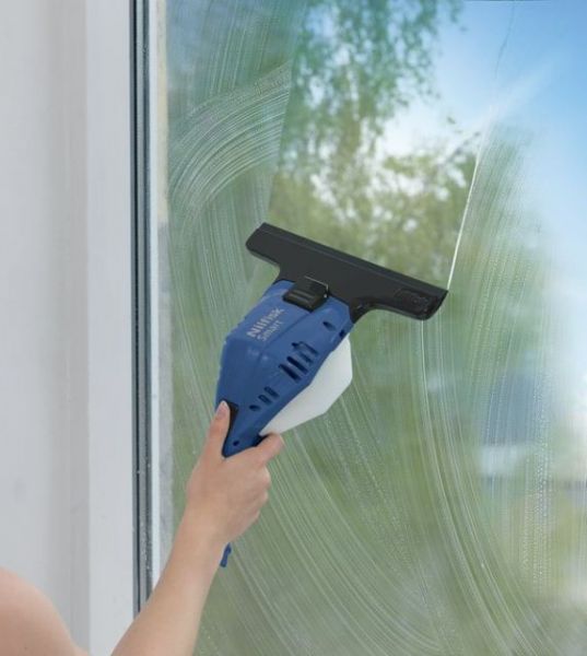 Новый аккумуляторный стеклоочиститель Nilfisk Smart обеспечивает мойку окон без разводов и справляется со своей работой очень быстро.