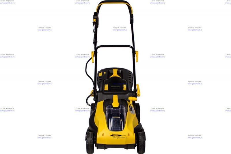 Производитель Китай Двигатель Аккумуляторный Дополнительная информация о двигателе 36V, 2,6Ah Li-ion Тип корпуса Полипропилен Ширина скашивания, см 38 Регулировка высоты скашивания Центральная Выброс травы Задний выброс Тип перемещения Несамоходная Объем травосборника, л 45 Высота скашивания, см 3-8 (6 положений) Количество ножей 1 Тип скашивания Сбор в травосборник (центральный выброс) Вес 13, кг Газонокосилка на аккумуляторе Champion EMB-400 предназначена для кошения травы на газонах площадью до 400 кв. метров. Именно на такую площадь рассчитан заряд её аккумулятора, которого хватает на тридцать минут беспрерывной работы. Если площадь газона больше, то необходимо перезарядить аккумулятор, ёмкость которого составляет 2,6 ампер-часа при напряжении 36 вольт.